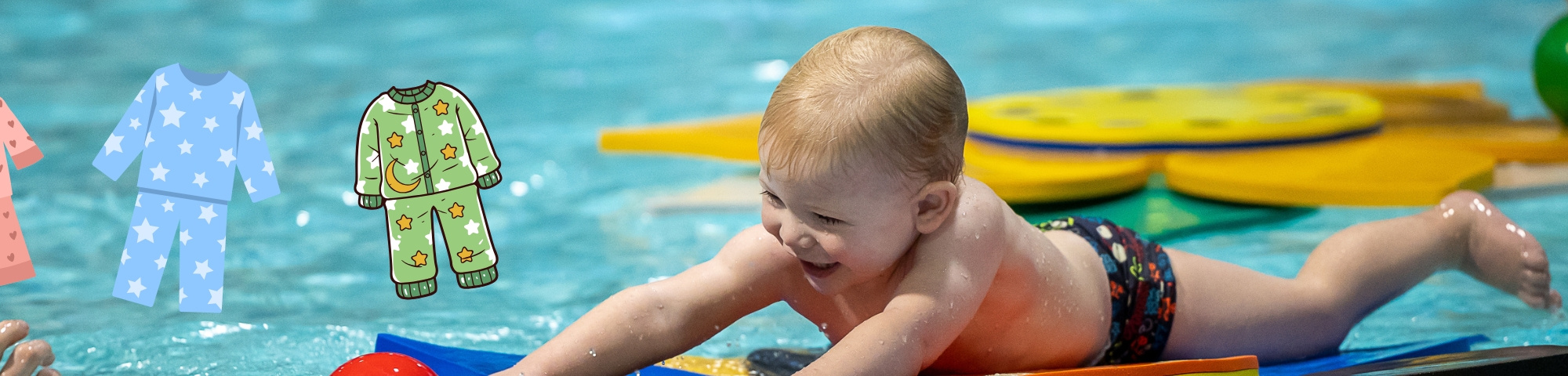 Het is tijd voor het volgende thema bij het Ouder- en Kindzwemmen, namelijk Pyjamales! Tijdens de lessen Ouder- en Kindzwemmen deze week mogen de kinderen in 'kleding' komen zwemmen om zo te oefenen en te wennen aan het zwemmen met kleding, wat later ook terug zal komen tijdens de zwemlessen voor het A-, B- en C-Diploma.